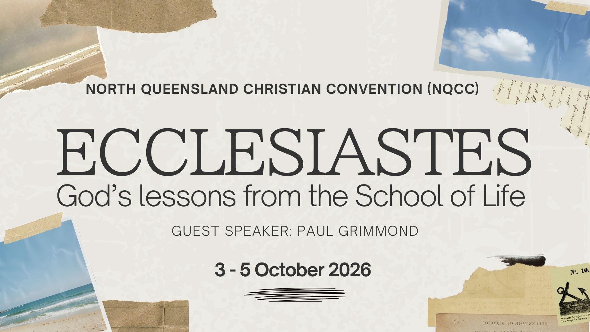 Paul Grimmond is our guest preacher at NQCC26. He will be speaking about ‘God’s lessons from the School of Life’ with four talks from Ecclesiastes.